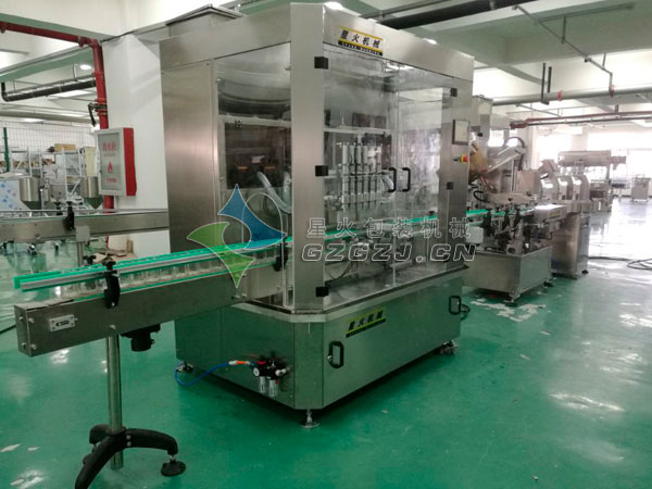 全自动灌装旋盖贴标生产线-酱料灌装真空旋盖生产线细节展示: